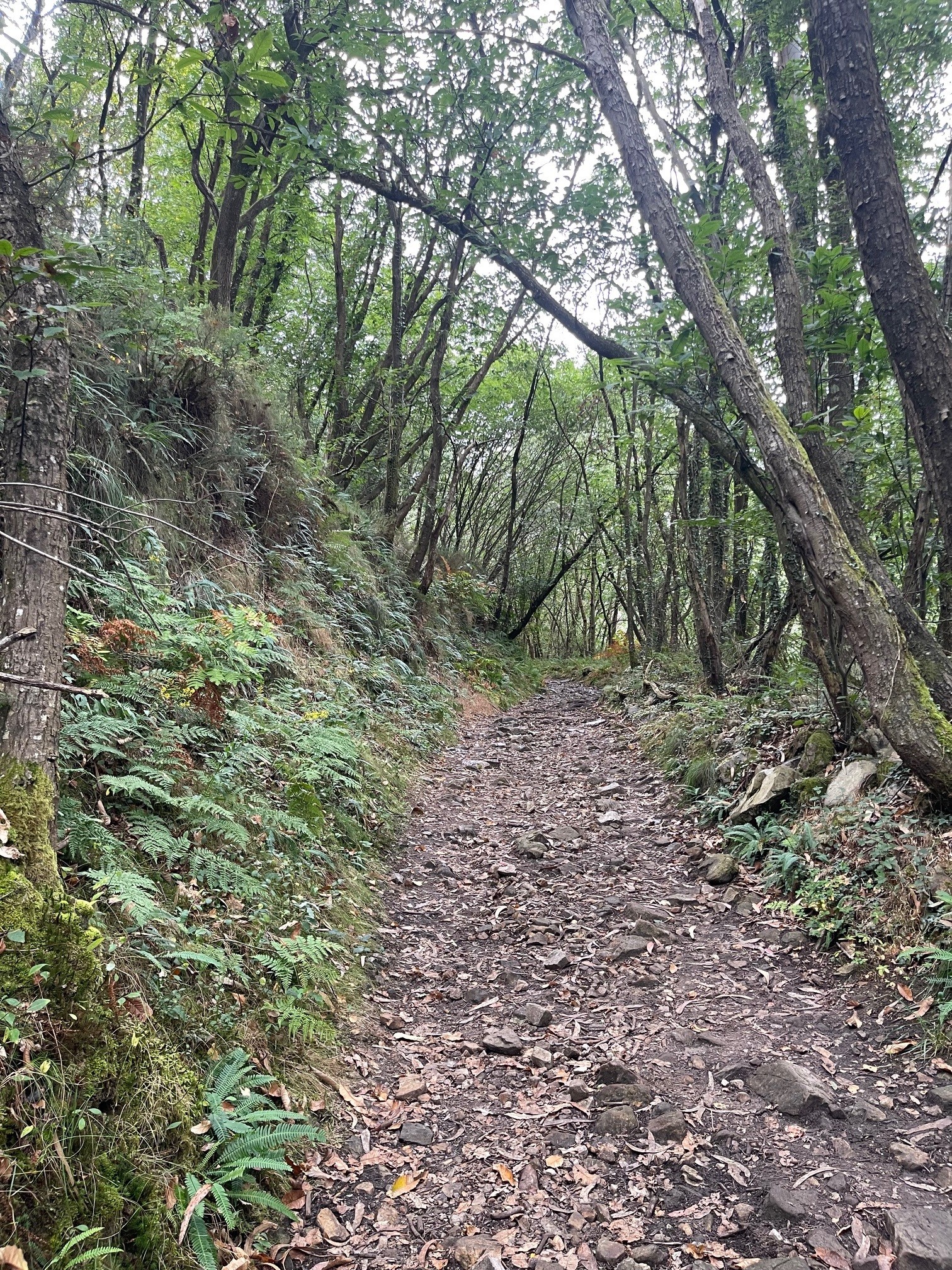Heute stand dann, bei einem Radrennen würde man sagen Bergetappe auf dem Plan. Als ich auf der ersten größeren Anhöhe stand und die Zunge raushing, erinnerte ich mich an unseren Alpenbergführer, der sagte immer: „Bergan kurze, gleichmäßige Schritte. So kommst du am besten oben an !“ Und Zack, auf der nächsten Anhöhe hing die Zunge nur halb so weit raus. Die Landschaft erinnert übrigens ein wenig an eine Mischung aus Alpen und Harz mit einem Touch südländischen Flairs.
